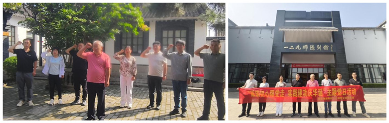 在象征著革命精神的“劉鄧和他的戰(zhàn)友們”雕塑前,支部黨員駐足參觀并合影留念。隨后,大家步行至八路軍一二九師司令部舊址。在莊嚴(yán)肅穆的舊址院落中,黨員們仔細(xì)觀看“抗戰(zhàn)時(shí)期涉縣革命舊址分布圖”,全神貫注聆聽講解員講述。走近劉、鄧、李首長親手栽種的丁香樹、紫荊樹,面對鮮艷的黨旗,全體黨員莊重地重溫入黨誓詞,在鏗鏘有力的誓詞中接受了一次深刻的黨性教育和心靈洗禮。