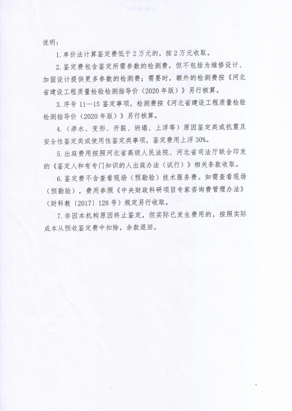 根據(jù)《河北省認(rèn)證認(rèn)可協(xié)會(huì)產(chǎn)品質(zhì)量鑒定管理辦法(試行)》第36條、《河北省認(rèn)證認(rèn)可協(xié)會(huì)工程質(zhì)量鑒定管理辦法(試行)》第35條“目前國(guó)家物價(jià)管理部門未對(duì)工程質(zhì)量鑒定收費(fèi)進(jìn)行統(tǒng)一定價(jià),鑒定機(jī)構(gòu)應(yīng)當(dāng)公示本機(jī)構(gòu)收費(fèi)標(biāo)準(zhǔn)”之規(guī)定,我公司參照財(cái)政部財(cái)科教【2017】128號(hào)《中央財(cái)政科研項(xiàng)目專家咨詢費(fèi)管理辦法》中的有關(guān)規(guī)定,并結(jié)合我公司產(chǎn)品質(zhì)量鑒定和工程質(zhì)量鑒定中鑒定專家工作的實(shí)際情況,制定了《河北省建筑科學(xué)研究院有限公司產(chǎn)品質(zhì)量鑒定/工程質(zhì)量鑒定收費(fèi)標(biāo)準(zhǔn)》(見(jiàn)附件)?,F(xiàn)予以公示。
