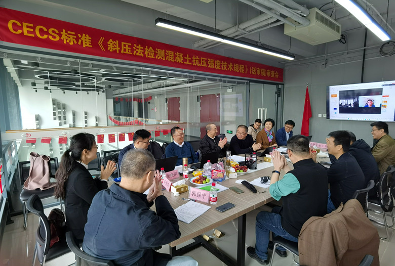 2023年3月28日,由河北省建筑科學(xué)研究院有限公司聯(lián)合河北建筑工程質(zhì)量檢測中心有限公司、邢臺市建設(shè)工程質(zhì)量檢測有限公司、承德中天建設(shè)工程檢測試驗有限公司、重慶大學(xué)、張家口市建設(shè)工程質(zhì)量檢測中心有限責(zé)任公司、科之杰新材料集團有限公司、河北萬博檢驗檢測技術(shù)服務(wù)有限公司、滄州市開元建筑檢測有限公司等11家單位共同編寫的中國工程建設(shè)標(biāo)準(zhǔn)化協(xié)會標(biāo)準(zhǔn)《斜壓法檢測混凝土抗壓強度技術(shù)規(guī)程》(送審稿)審查會以線上線下相結(jié)合的方式召開。中國工程建設(shè)標(biāo)準(zhǔn)化協(xié)會領(lǐng)導(dǎo)、標(biāo)準(zhǔn)審查組專家以及標(biāo)準(zhǔn)編制組成員30余人參加了本次會議。